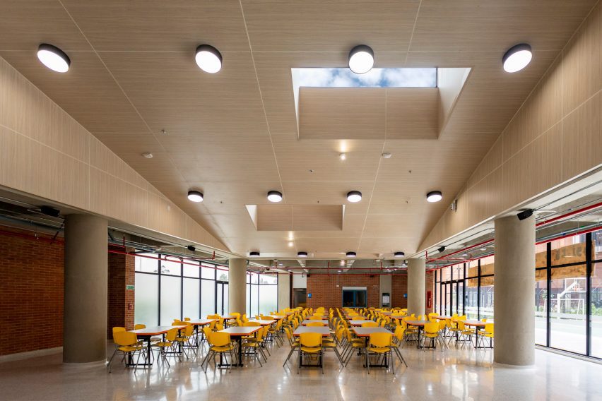 在较大的建筑中,沿着北部边缘的教室通过开放的走廊相连,并通过插入双高的中庭与全高玻璃区域和俯瞰波哥大河的阳台分开。