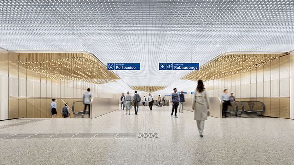 建筑师们将这一理念转化为一种内敛而精致的建筑语言,在拱券与拱廊、曲线与方正之间自如切换。其几何形态汲取了都灵建成环境中那些耳熟能详的经典元素——在此,原本理性严谨的建筑立面,让位于更为丰富且富有层次感的内部空间体验。地铁设计巧妙地采纳了这种对比手法:它呈现出一种沉稳大气的外部形象,同时允许每一个地铁站点在内部空间中展现出各具特色的独特个性。