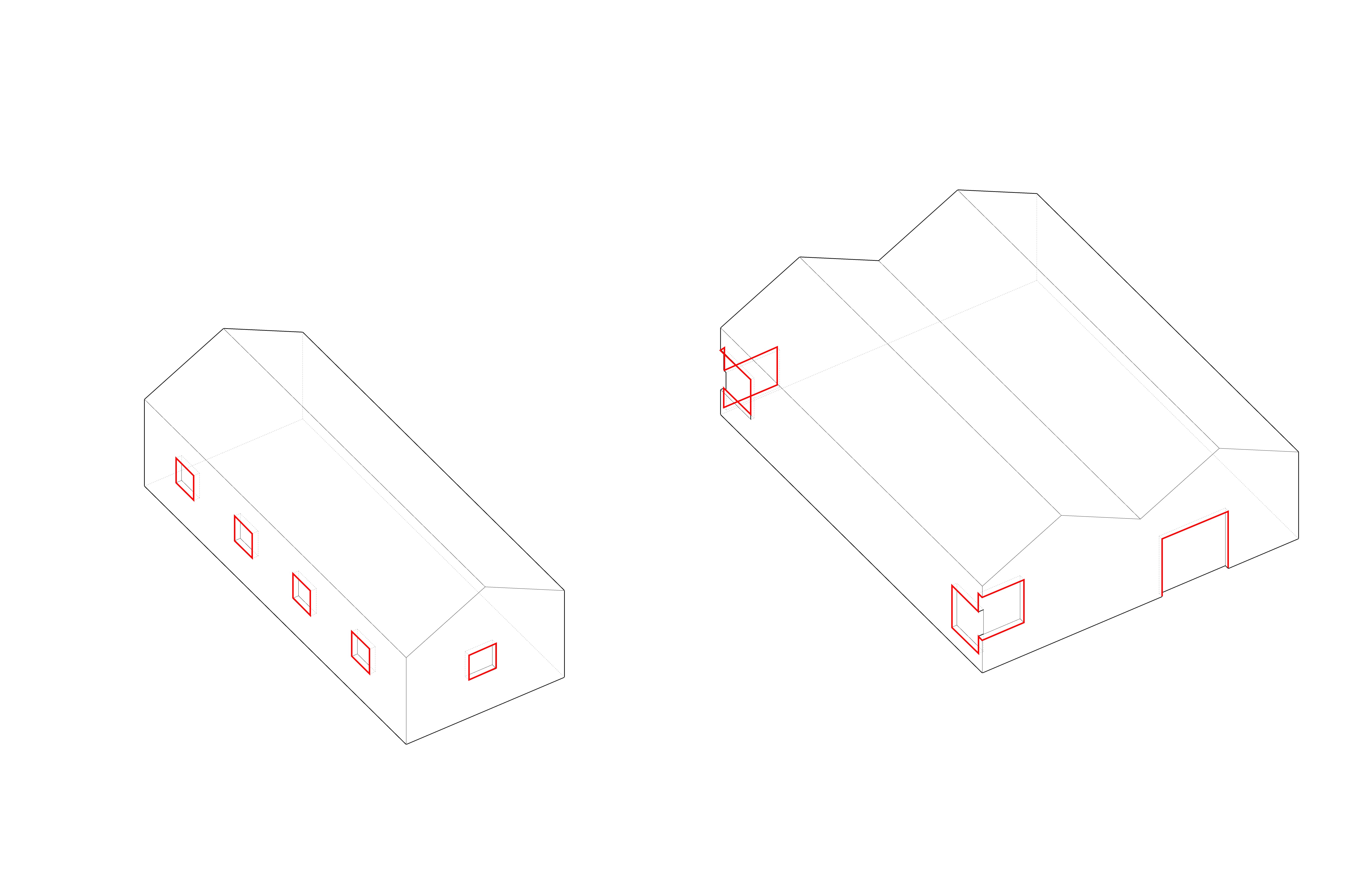 坡屋顶上增设的高窗对望山坡,除了引入自然景色,体现了对技术生态性和空间舒适性的考量。此外这些再构的“新窗”重构了建筑和自然的关系,它们积极地回应村中的巷道、民居、和周围的远山,让建筑内部与外界环境相互因借,从而发生更多的视线联系和内外的相互感知。