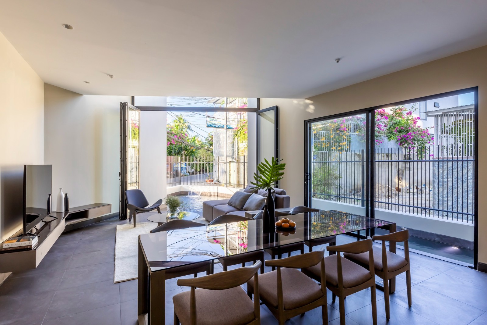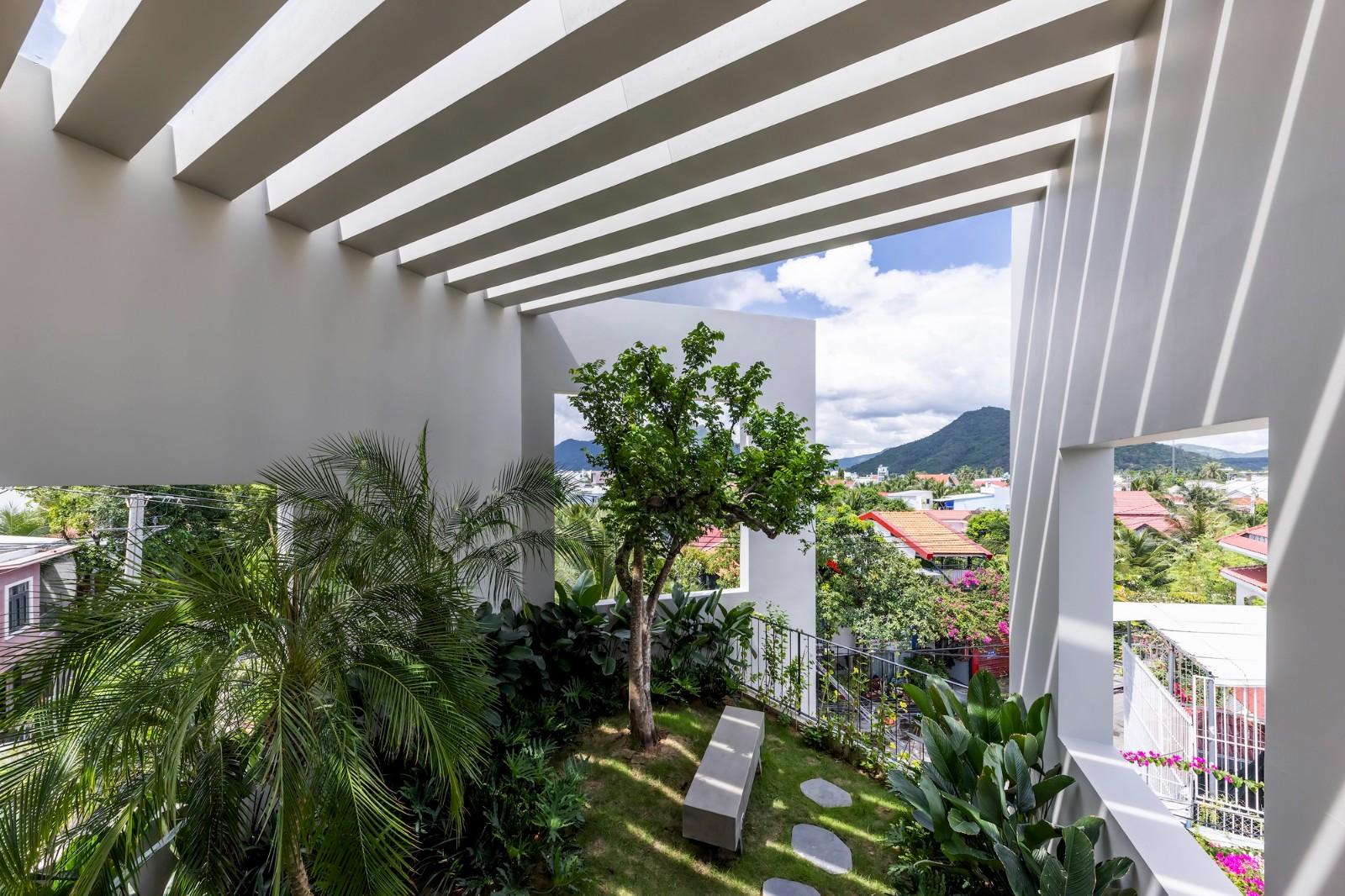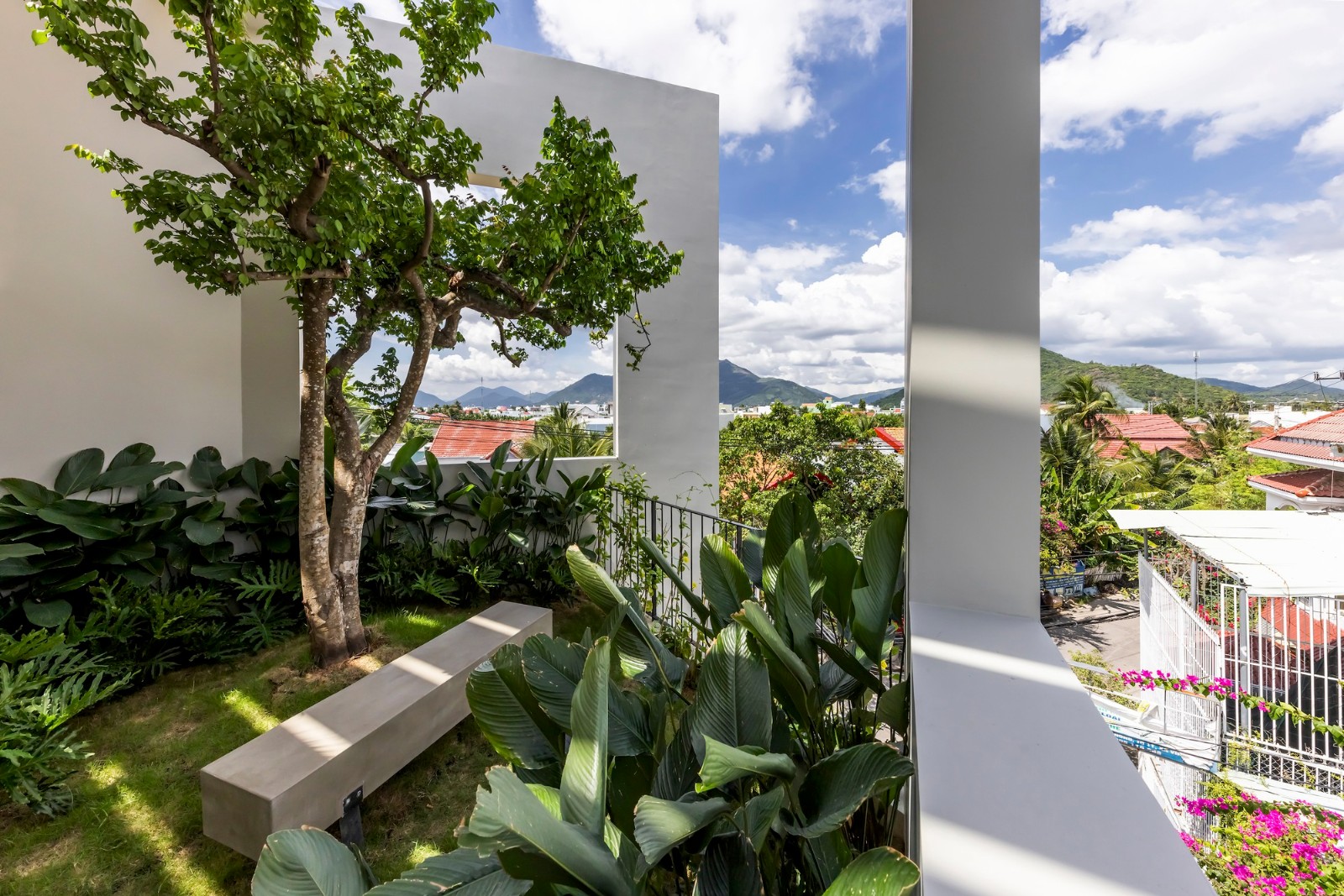 城市联排别墅生活空间的自然化。如今,越南的城市发展不断扩大,欣欣向荣,在有限的空间内设计房屋,同时满足不同的功能需求,对建筑师来说是一项具有挑战性的任务。天空花园别墅是位于越南中部芽庄市(该地区属于热带气候,干湿季节分明)的联排别墅,建在一块 100 平方米的非方形土地上,这给设计过程带来了挑战。