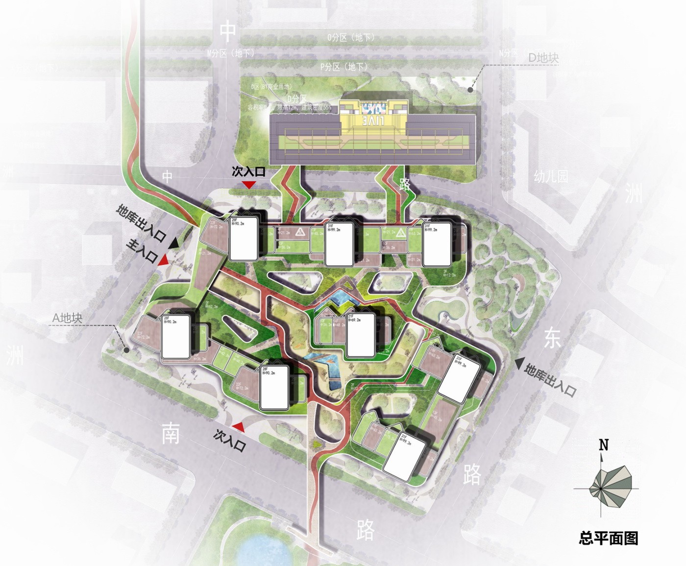 本设计地处产城融合新兴片区,位于生态、娱乐休闲轴线上重要节点,以打造文化、生态、特色产业融合高地、自然生态宜居社区、青年人乐活之地为目标。
