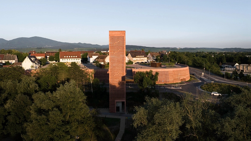 柏林莫诺建筑工作室(Mono Architekten)将一座穿孔混凝土观景塔与一个停车场结合在一起,停车场顶部是一个公共公园,为德国莱茵河畔诺恩堡镇(Neuenburg am Rhein)创造了一个新的入口。